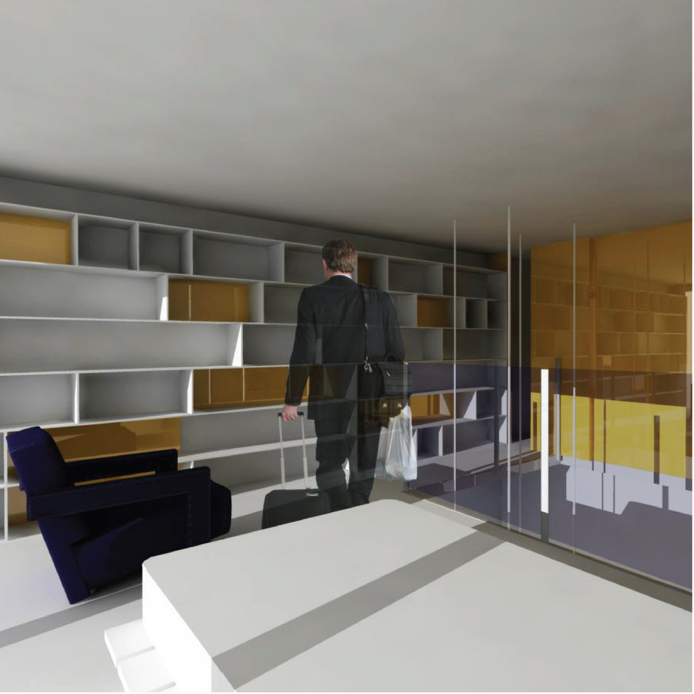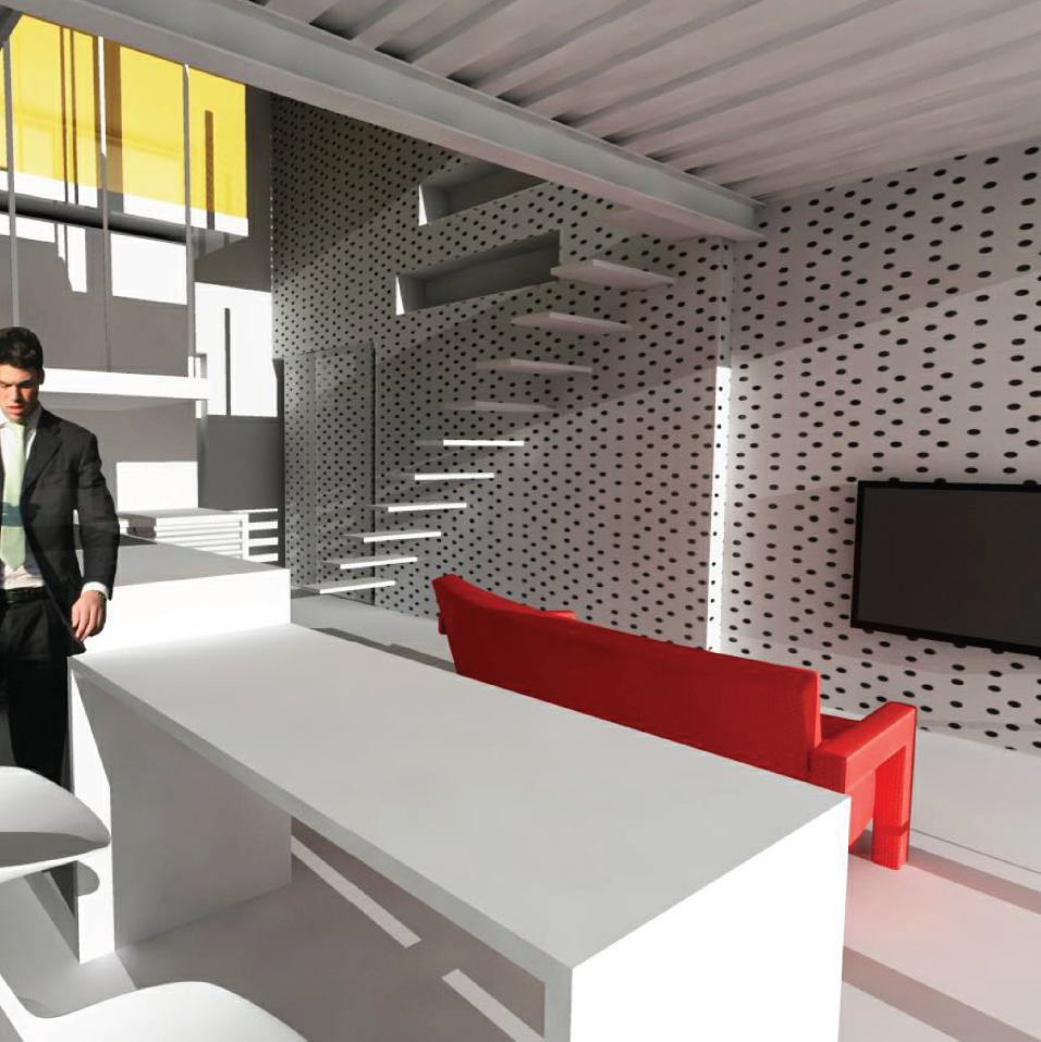 In particular I chose to develop the theme of the earth, by designing two focal points, a perforated steel equipped wall and a walk-in closet backlight.